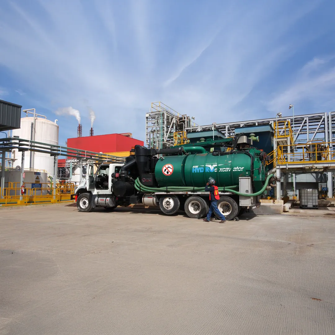 Servicio especializado de succión de residuos líquidos y lodos con equipo Vactor, operando de forma segura en planta, obra o instalaciones industriales.